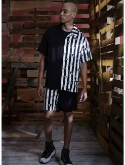 The dead are way more fashionable than the living. Rock theseΒ BeetlejuiceΒ resort shorts, inspired by your favorite Ghost with the Most! Featuring a solid black and black and white stripe split design, with a toss print of “Beetlejuice,” beetles andΒ sandworms. There are hip pockets and an elasticated waistband with a neon green drawstring. Pair with the matching button-up to complete your ghoulish look!