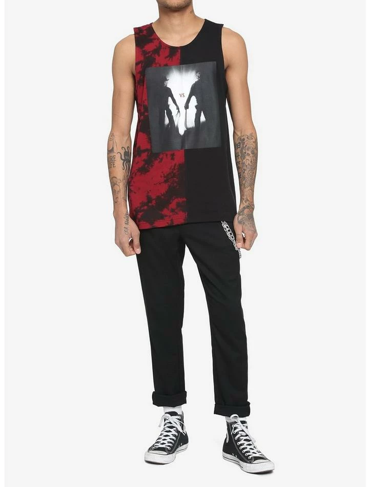What’s better than a tee with a horror legend? A tee with two horror legends! This tank has a split design with solid black on one side and red and black wash on the other. In the center, there is a print of the movie poster for Freddy vs. Jason, highlighting these horror icons in all their glory.Β