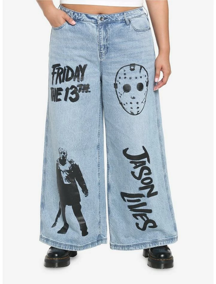 Budget β€οΈ Friday The 13th Jason Wide Leg Mom Jeans Plus Size π